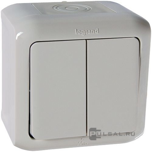 Переключатель Quteo, двухклавишный, без подсветки, цвет - серый