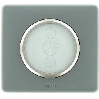 Сенсорные диммерыДля того чтобы включить или выключить свет нужно просто дотронуться до сенсорного элемента. При удерживании пальца на сенсорной поверхности происходит регулировка яркости свечения.. Бывают диммеры с несколькими сенсорами, в этом случае один из сенсоров отвечает за включение\выключение ламп, остальные сенсоры отвечают за уровень яркости. Также сенсорный диммер может оснащаться инфракрасным приемником, реагирующим на дистанционное управление. Он управляется пультом и часто используется в проходном помещении. |