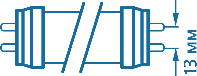 |   | G13 — штырьковый цоколь. Расстояние между штырьками составляет 13 мм. Лампы с данным цоколем устанавливаются в светильники типа Армстронг, ЛПО, ЛВО, ЛСП и прочих. |