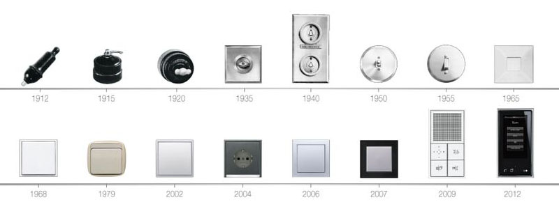 Начиная с первых лет основания основные вехи на пути к успеху в бизнесе характеризуются разработкой продуктов которые действительно выделяются. В качестве результата требований рынка JUNG быстро стал специализироваться на производстве выключателей и розеток. Также как и высокие стандарты качества, фактор дизайна стал все более и более важным. В 1960-х годах компания представила кнопку без фиксации, которая дополнилась балансирной и поворотной моделями, которые стали классикой современной конструкции переключателей. С разработкой первой серии с максимальной поверхностью выключателя 70х70 мм, JUNG решительно установил новые стандарты функциональности, конструкции и удобства использования в 1969 году. Родилось новое поколение переключателей!