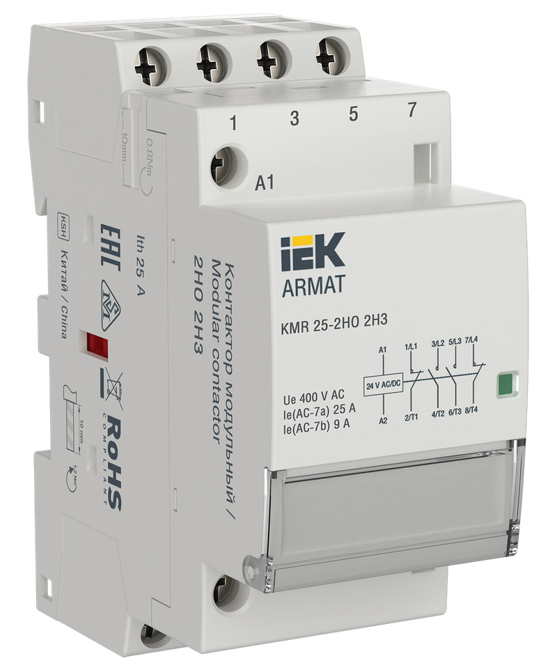 Контактор модульный ARMAT, 2НО+2НЗ, 25А, 24В AC, 24В DC