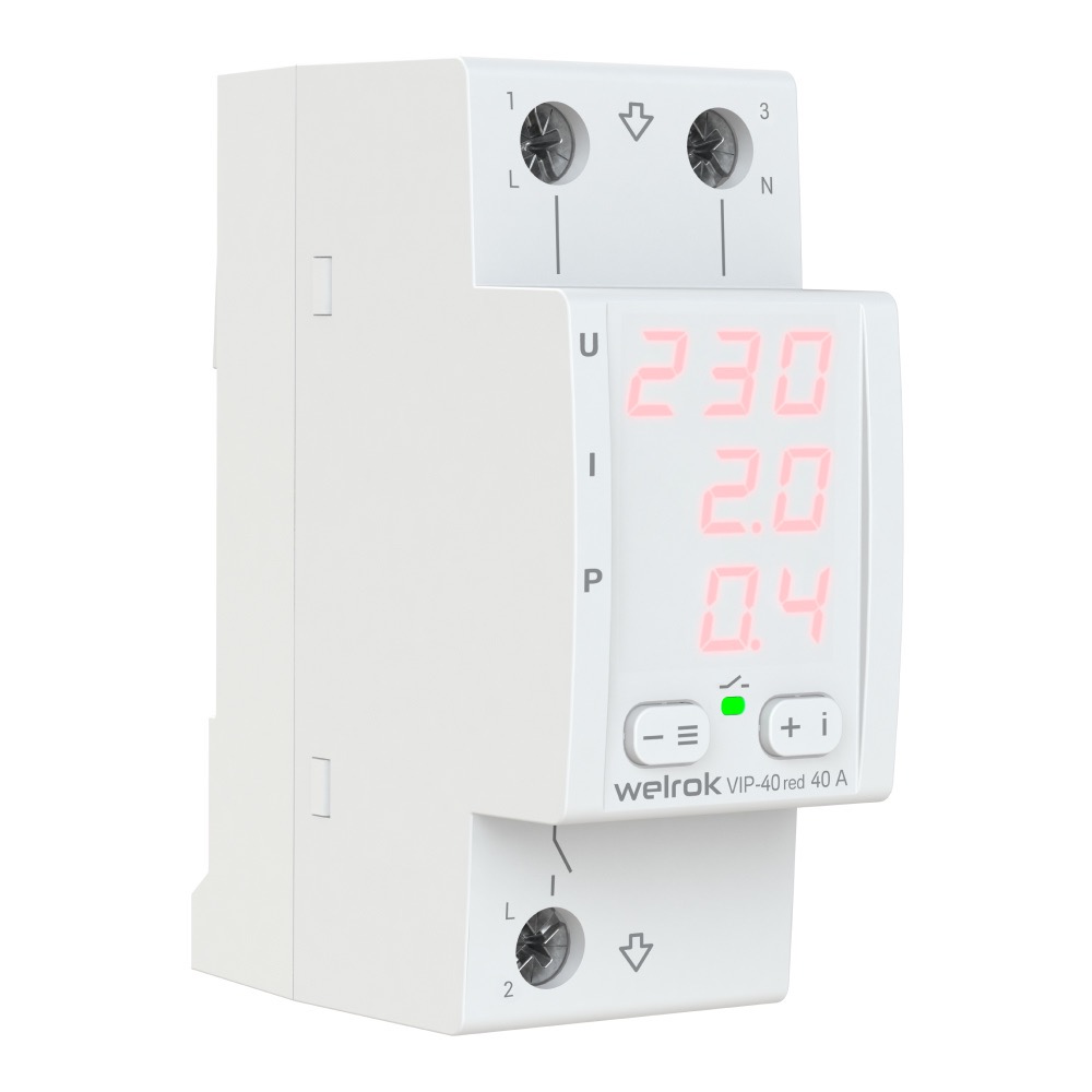 Многофункциональное реле напряжения с контролем тока 1P+N Relay welrok, 1НО, 40А, 220В AC