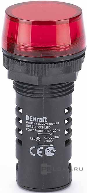 Лампа комм. ADDS d=22 мм LED кр.d=220В AC/DC ЛKd=22 DEKraft