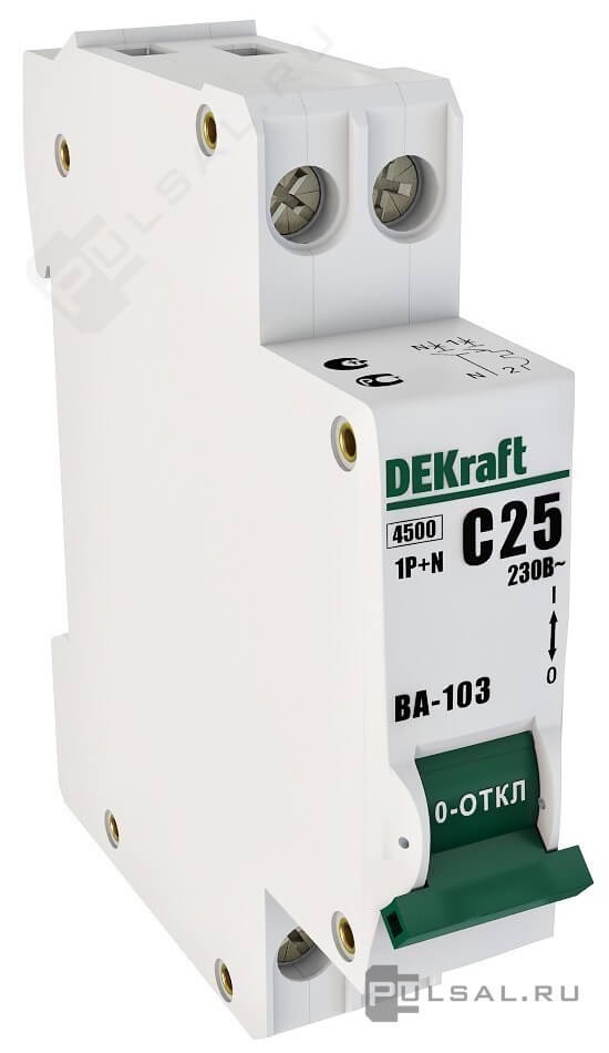 Автоматический выключатель ВА-103, 1+N полюс, 25А, D, 4, 5 кА