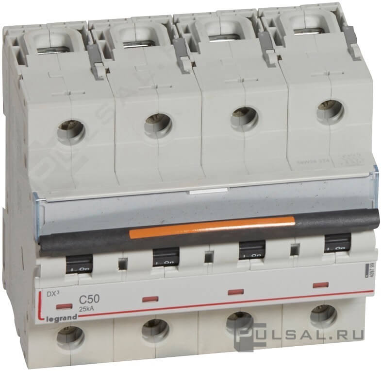 Автоматический выключатель DX³, 4 полюса, 50А, C, 25 кА