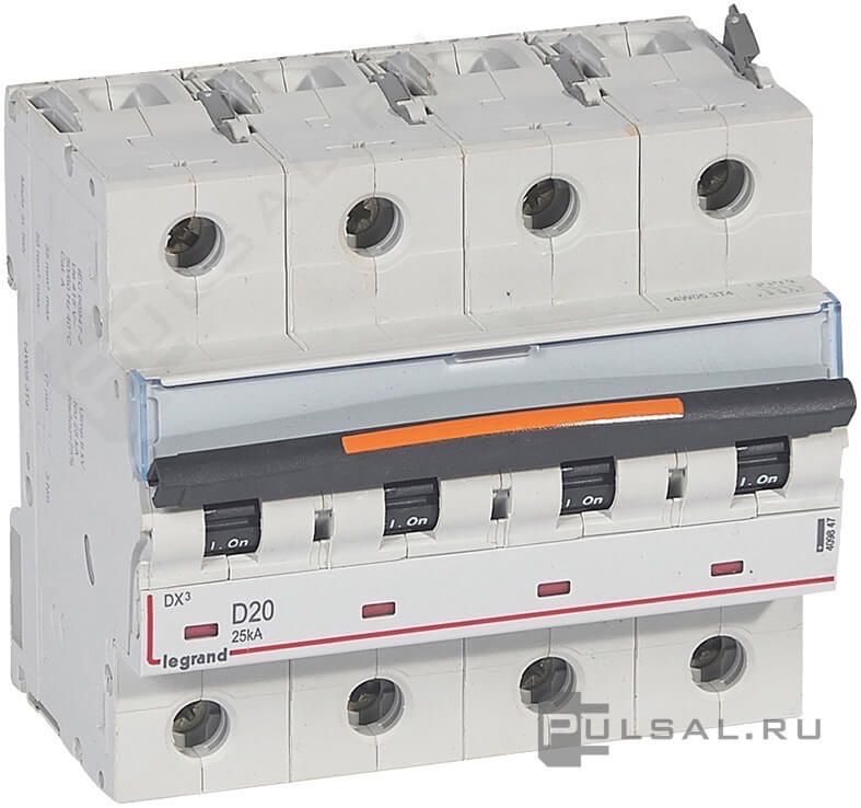 Автоматический выключатель DX³, 4 полюса, 20А, D, 25 кА