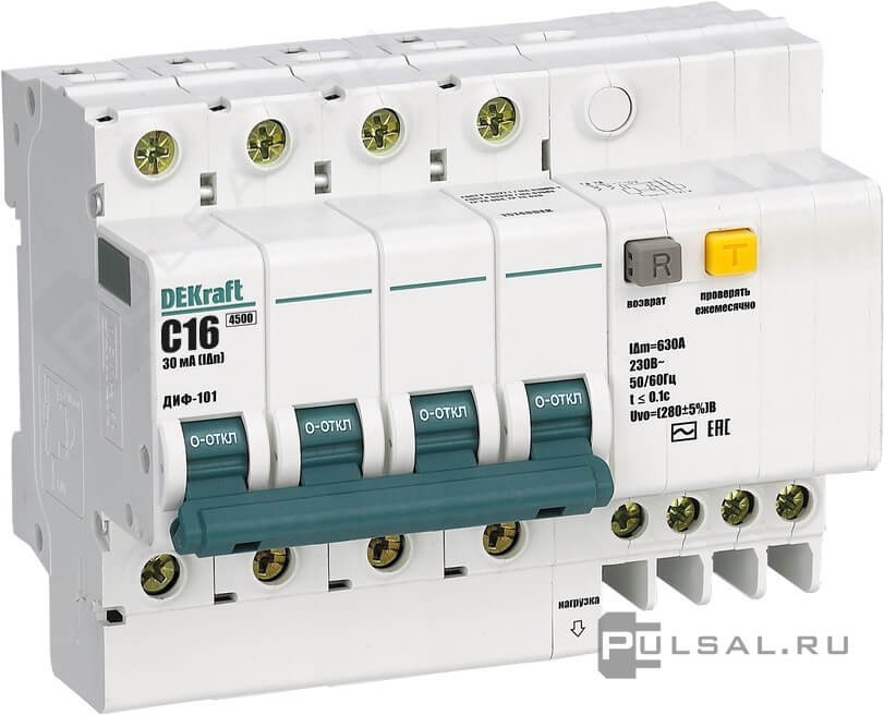 Автомат дифференциального тока ДИФ-101 ДИФ-101, 3+N полюса, 16А, C, 4,5 кА, тип - AC,