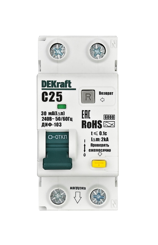 Автомат дифференциального тока ДИФ-103 ДИФ-103, 1+N полюс, 25А, C, 6 кА, тип - AC,
