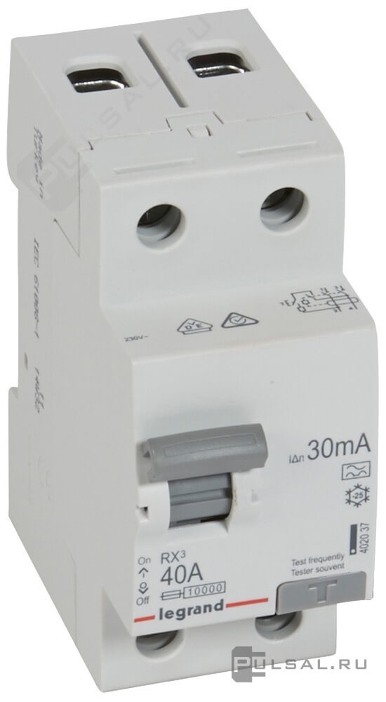 Выключатель дифференциального тока (УЗО) RX³, 2 полюса, 40А, тип - A, 30 мА