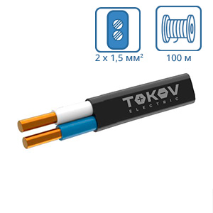Кабель плоский ППГ-Пнг(А)-HF 2х1,5 (бухта 100м), TOKOV ELECTRIC