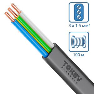 Кабель плоский ВВГ-Пнг(А)-LSLTx 3х1,5 (бухта 100м), TOKOV ELECTRIC