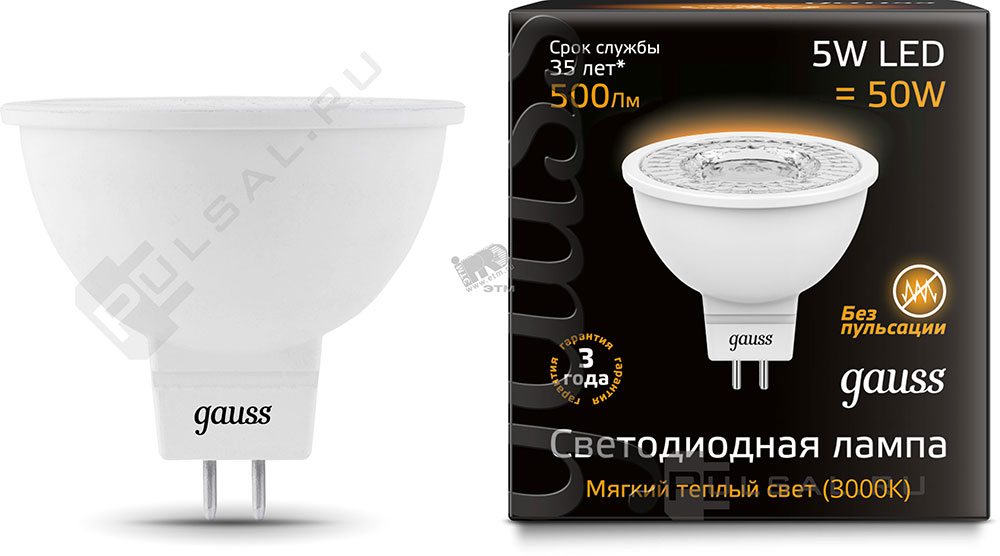 Лампа светодиодная Black, цоколь - GU5.3, мощность - 5Вт, световой поток - 500Лм, цветовая температура - 3000К, не диммируется, 101505105, Gauss