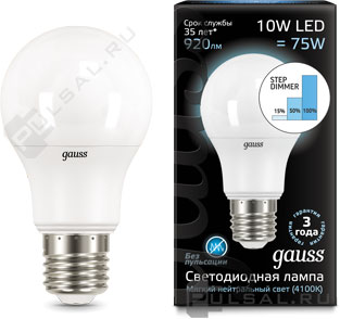 Лампа светодиодная Black, цоколь - E27, мощность - 10Вт, световой поток - 920Лм, цветовая температура - 4100К, диммирование шаговое, 102502210-S, Gauss