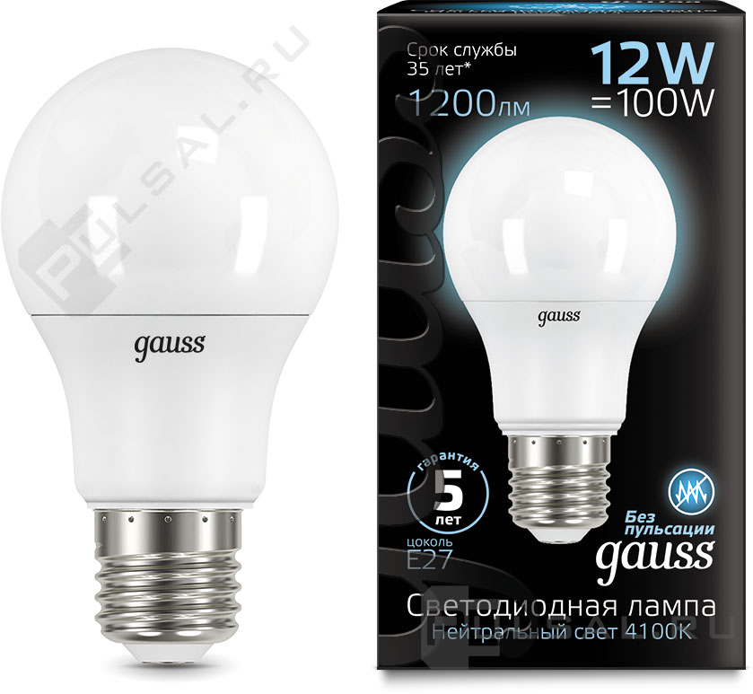 Лампа светодиодная Black, цоколь - E27, мощность - 12Вт, световой поток - 1200Лм, цветовая температура - 4100К, не диммируется, 102502212, Gauss