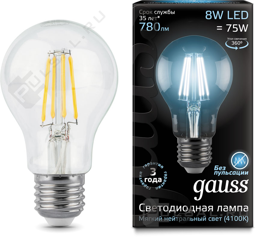 Elementary, цоколь - E27, мощность - 8Вт, световой поток - 540Лм, цветовая температура - 4100К, не диммируется, 53228, Gauss