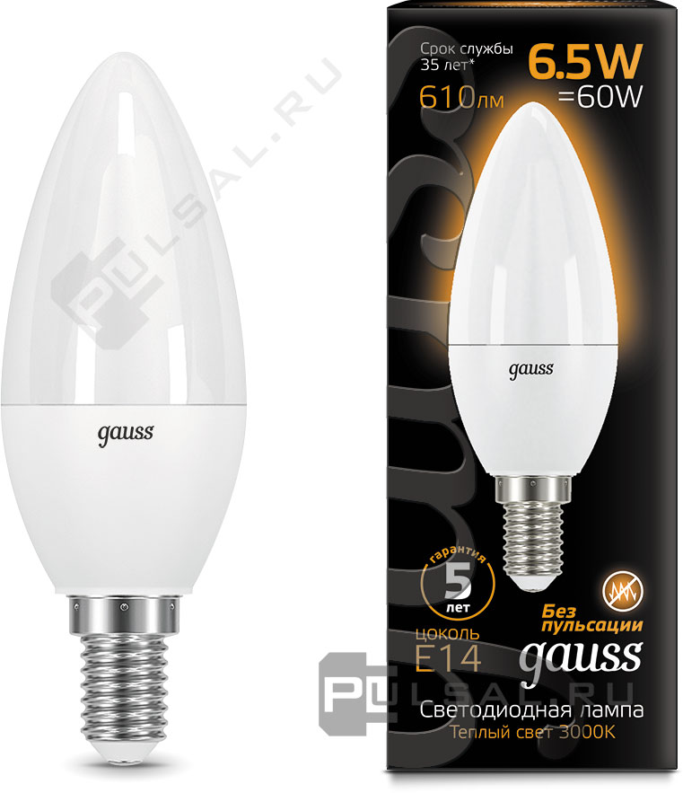 Лампа светодиодная Black, цоколь - E14, мощность - 6.5Вт, световой поток - 520Лм, цветовая температура - 3000К, не диммируется, 103101107, Gauss