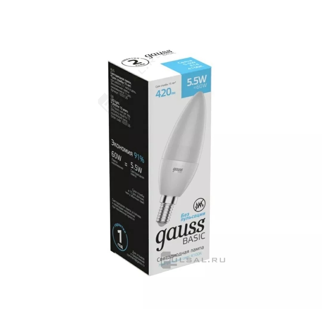 Лампа светодиодная Basic, цоколь - E14, мощность - 5.5Вт, световой поток - 420Лм, цветовая температура - 4100К, не диммируется, 1033126, Gauss