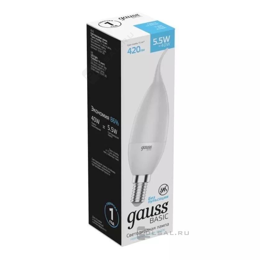Лампа светодиодная Basic, цоколь - E14, мощность - 5.5Вт, световой поток - 420Лм, цветовая температура - 4100К, не диммируется, 1034126, Gauss