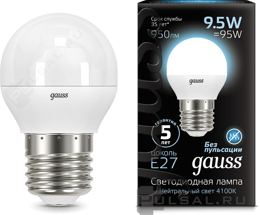 Лампа светодиодная Black, цоколь - E27, мощность - 9.5Вт, световой поток - 950Лм, цветовая температура - 4100К, не диммируется, 105102210, Gauss