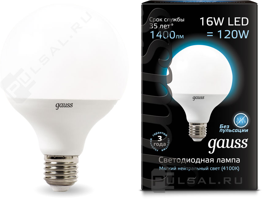 Лампа светодиодная Black, цоколь - E27, мощность - 16Вт, световой поток - 1400Лм, цветовая температура - 4100К, не диммируется, 105102216, Gauss
