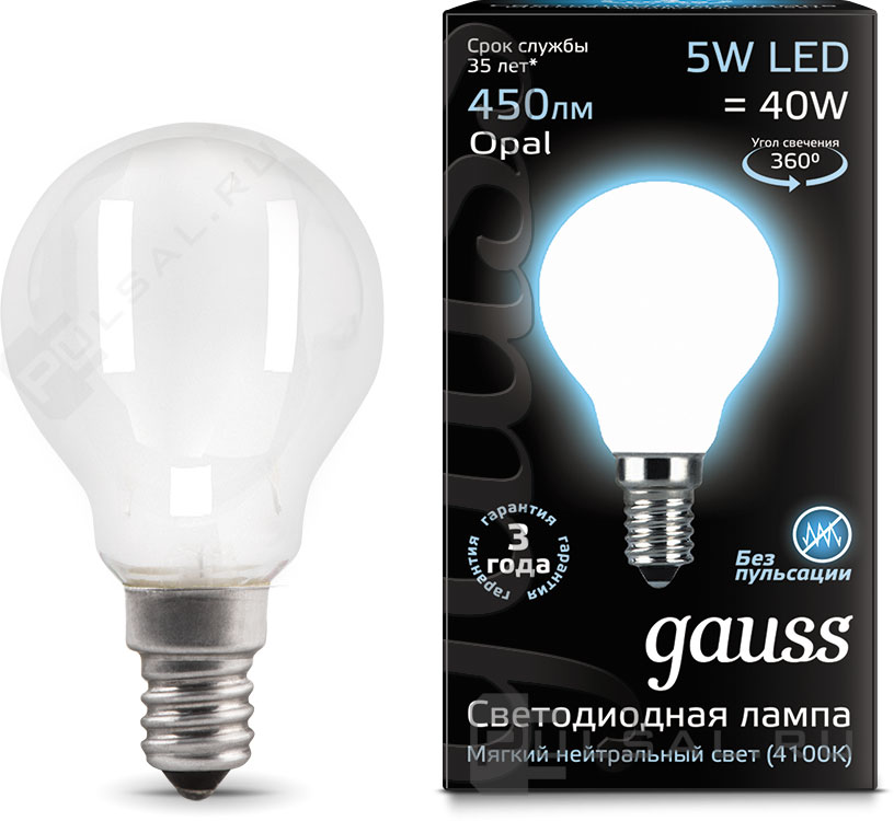 Black, цоколь - E14, мощность - 5Вт, световой поток - 450Лм, цветовая температура - 4100К, не диммируемая, 103801205T, Gauss