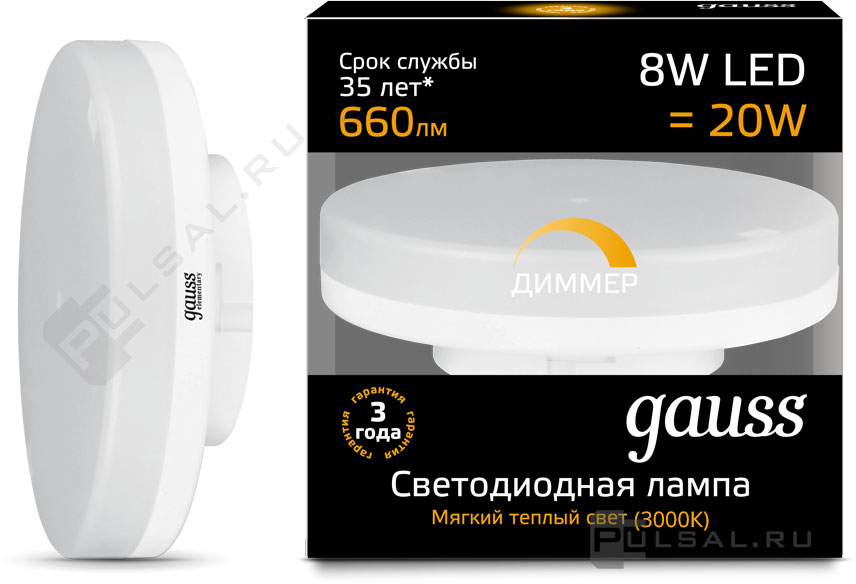 Лампа светодиодная Elementary, цоколь - GX53, мощность - 13Вт, световой поток - 890Лм, цветовая температура - 3000К, не диммируется, 83813, Gauss