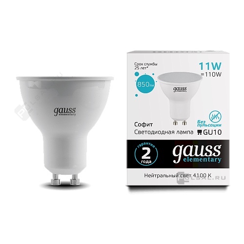 Лампа светодиодная Elementary, цоколь - GU10, мощность - 11Вт, световой поток - 860Лм, цветовая температура - 4100К, не диммируется, 13621, Gauss