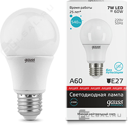 Лампа светодиодная Elementary, цоколь - E27, мощность - 7Вт, световой поток - 540Лм, цветовая температура - 4100К, не диммируется, 23227A, Gauss