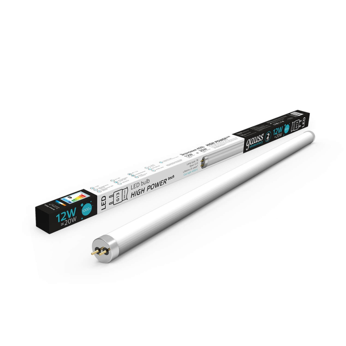 Лампа 600мм светодиодная Elementary, цоколь - G13 (T8), мощность - 12Вт, световой поток - 1000Лм, цветовая температура - 4000К, не диммируется, 93022, Gauss