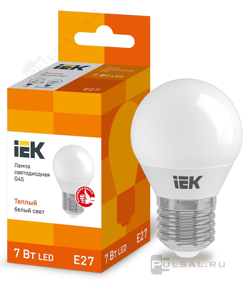 Лампа светодиодная Лампы IEK, цоколь - E27, мощность - 7Вт, световой поток - 630Лм, цветовая температура - 3000К, не диммируется, LLE-G45-7-230-30-E27, IEK