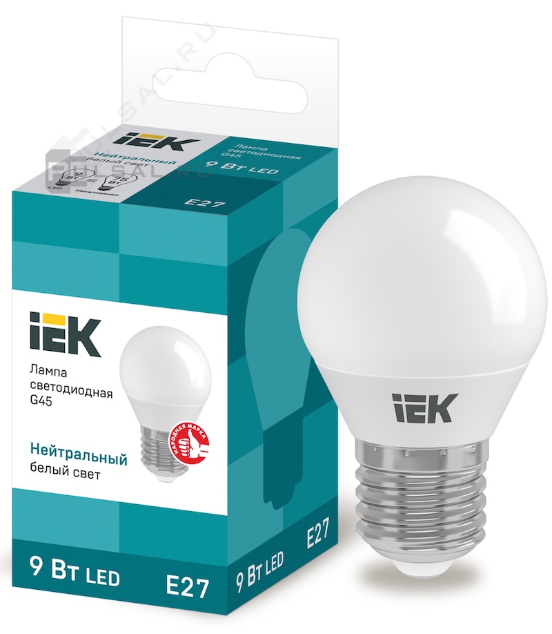 Лампа светодиодная Лампы IEK, цоколь - E27, мощность - 9Вт, световой поток - 810Лм, цветовая температура - 4000К, не диммируется, LLE-G45-9-230-40-E27, IEK