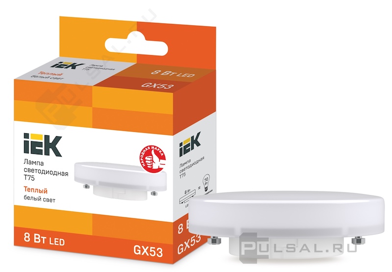 Лампа светодиодная Лампы IEK, цоколь - GX53, мощность - 8Вт, световой поток - 720Лм, цветовая температура - 3000К, не диммируется, LLE-T80-8-230-30-GX53, IEK