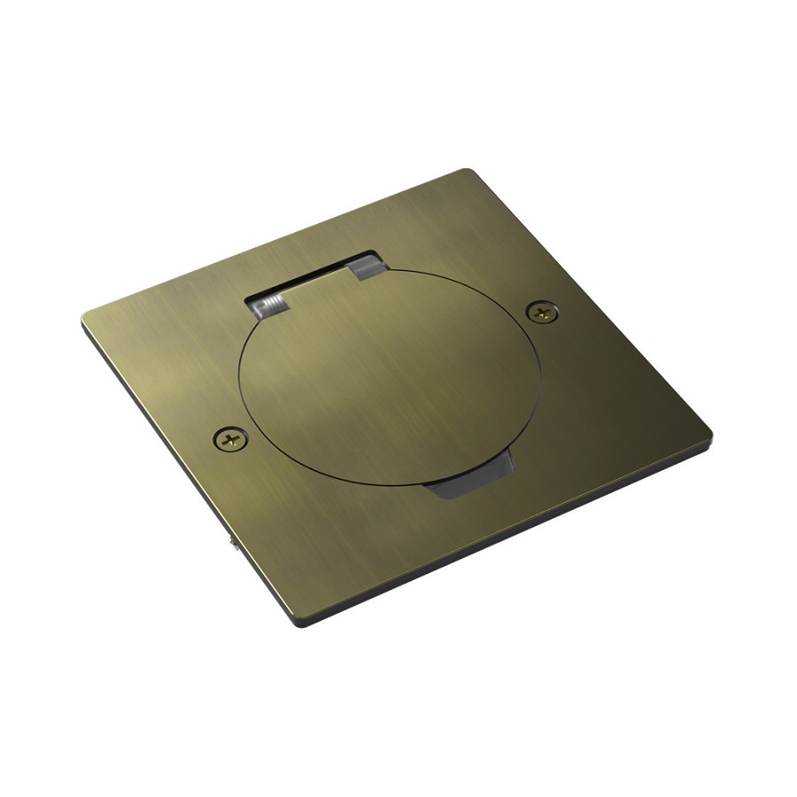 Лючок квадратный в пол (без установочного набора и без розеток) Лючки DFB, напольная, 1 пост, 2 модуля, цвет - латунь античная