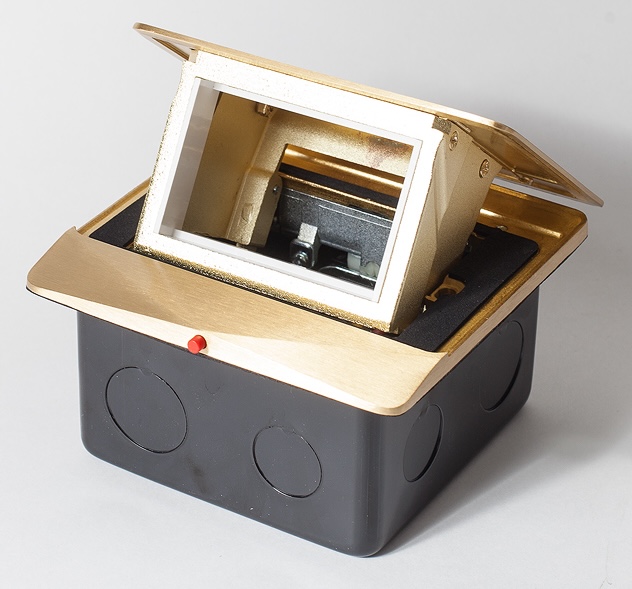 Люк на 1,5 поста с металлической коробкой Системы лючков, напольная, 3 модуля, 1,5 поста без перегородки, цвет - латунь