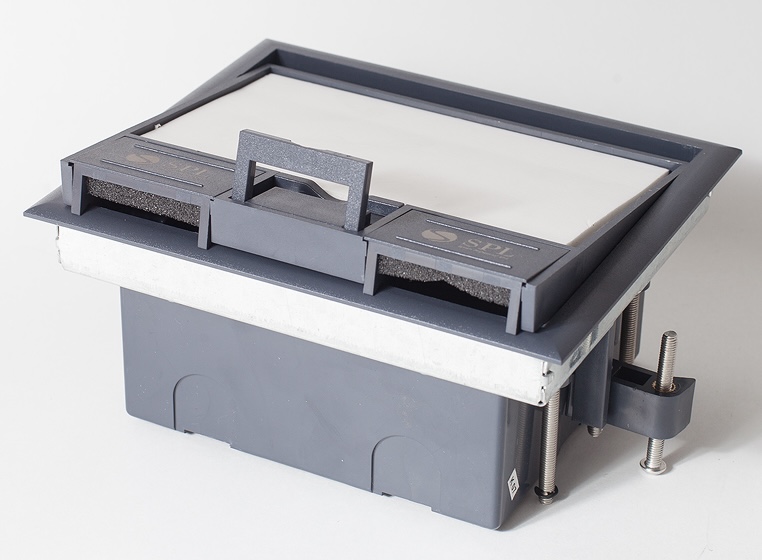 Люк на 4 поста с пластиковой коробкой Системы лючков, напольная, 4 поста, 8 модулей, цвет - серый