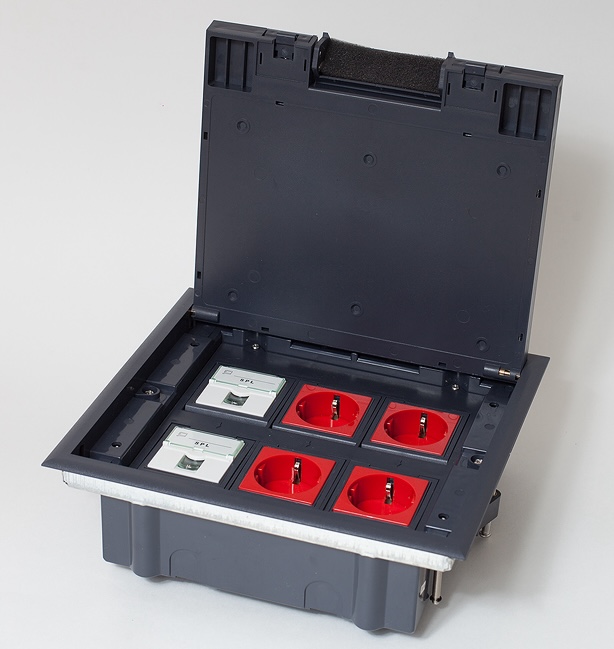Люк на 6 постов с пластиковой коробкой Системы лючков, напольная, 6 постов, 12 модулей, цвет - серый