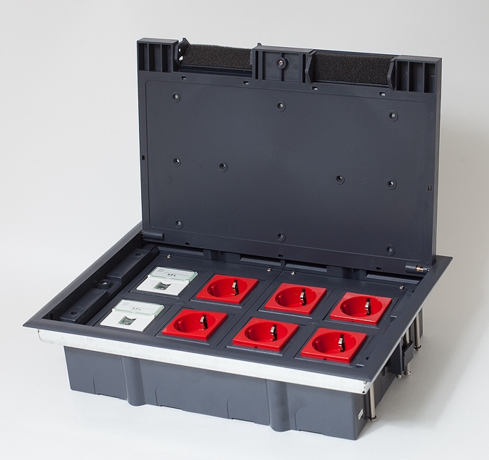 Люк на 8 постов с пластиковой коробкой Системы лючков, напольная, 8 постов, 16 модулей, цвет - серый