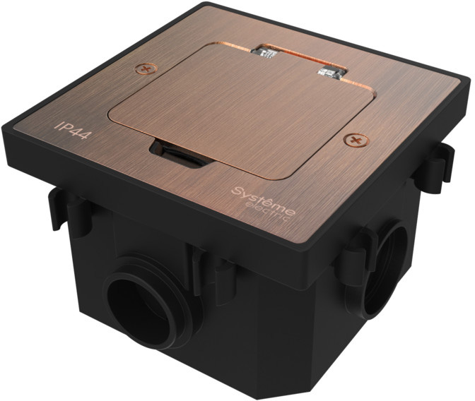 Лючок MultiDesk с монтажной коробкой для бетонных полов (без розеток) MultiDesk, W45, напольная, 1 пост, цвет - медь