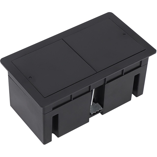 Встраиваемый розеточный блок со сдвижными крышками Лючки DDSB, для столов и мебели, 2 поста, 4 модуля, цвет - черный матовый