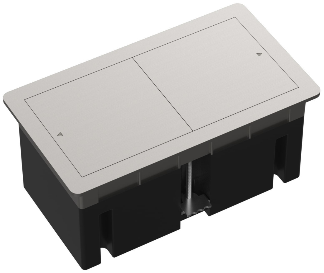 Встраиваемый розеточный блок со сдвижными крышками Лючки DDSB, для столов и мебели, 2 поста, 4 модуля, цвет - никель