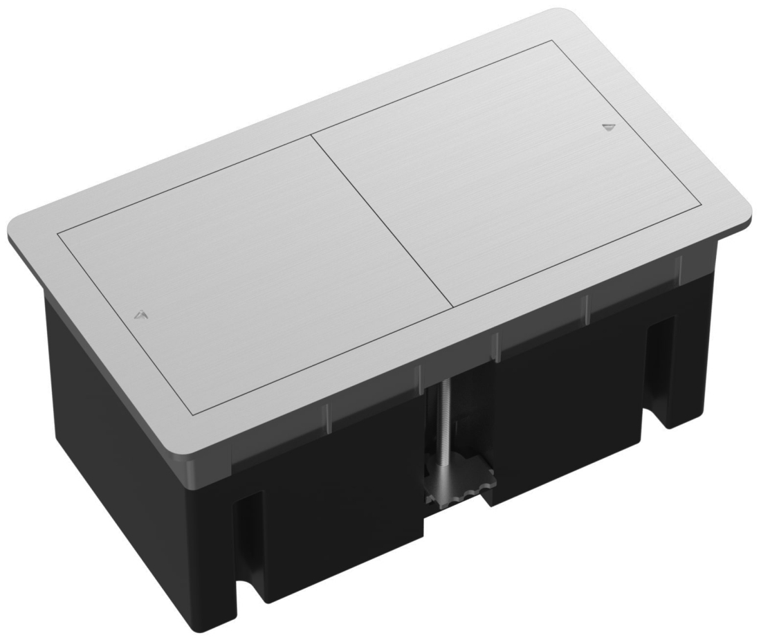 Встраиваемый розеточный блок со сдвижными крышками Лючки DDSB, для столов и мебели, 2 поста, 4 модуля, цвет - серебро