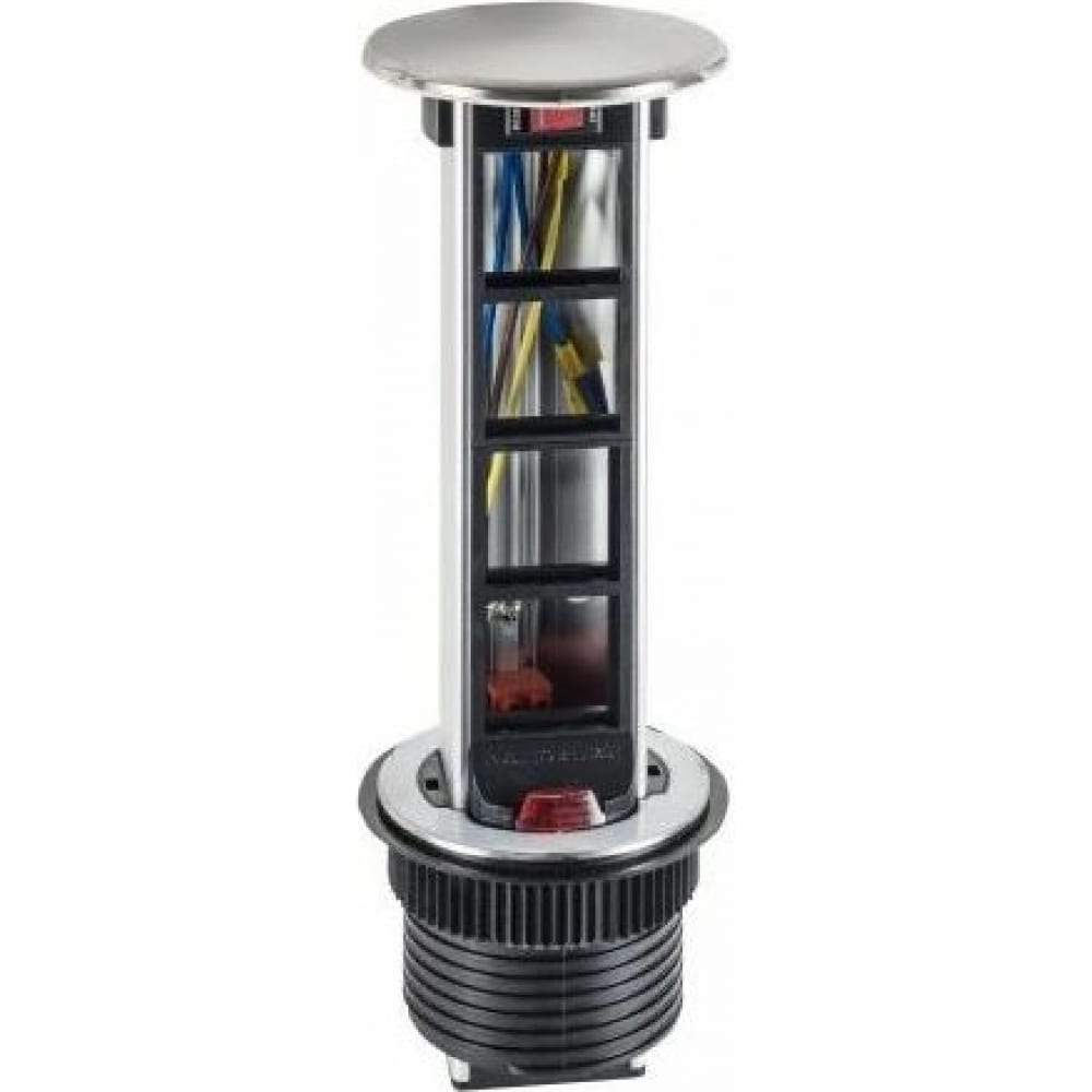 Телеблок на 4 механизма с выключателем нагрузки для столов и мебели, 4 поста, 8 модулей, цвет - сталь