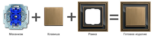 Механизмы 3-х цветов комбинируются с рамками 10-ти цветов.