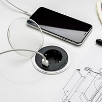 - встраиваемые в стол розетки, USB-зарядки, безпроводные зарядки