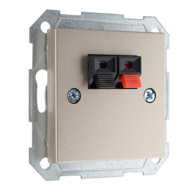 Розетка Epsilon, Retro Liregus, со шторками, с заземлением, одинарная, безвинтовые клеммы, цвет - шампань