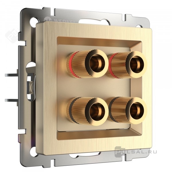 Розетка акустическая Alumax, Split, Slab, Senso, Baguette, Acrylic, Platinum, Elite, Snabb, Stream, Flock, Stark, Fiore, Favorit, Diamant, Aluminium, Antik, Metallic, 2 пары, цвет - шампань рифленый