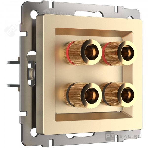 Розетка акустическая Alumax, Split, Slab, Senso, Baguette, Acrylic, Platinum, Elite, Snabb, Stream, Flock, Stark, Fiore, Favorit, Diamant, Aluminium, Antik, Metallic, 2 пары, цвет - шампань