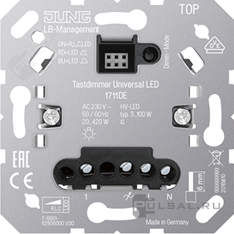 Механизм светорегулятора (диммера) 20-420 Вт/ВА, для LED 3-100 Вт A VIVA, A creation, A 550, A flow, AS 500, CD 500, CD plus, LS 990, LS plus, LS ZERO, LS-design, SL 500, клавишный, с возможностью управления с 2-х мест, лампы накаливания и галогенные 220В (R), лампы с индукционным (обмоточным) трансформ.(L), лампы с электронным (емкостным) трансформ.(C), диммируемые лампы LED 220В (LEDi тип L), диммируемые лампы LED 220В (LEDi тип C)