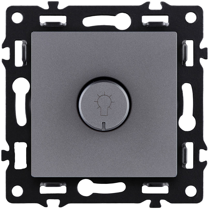 Светорегулятор для светодиодных ламп 5-200 Вт/ВА Asthetik, поворотно-нажимной, лампы накаливания и галогенные 220В (R), лампы с индукционным (обмоточным) трансформ.(L), лампы с электронным (емкостным) трансформ.(C), диммируемые лампы LED 220В (LEDi тип L), диммируемые лампы LED 220В (LEDi тип C), цвет - серый