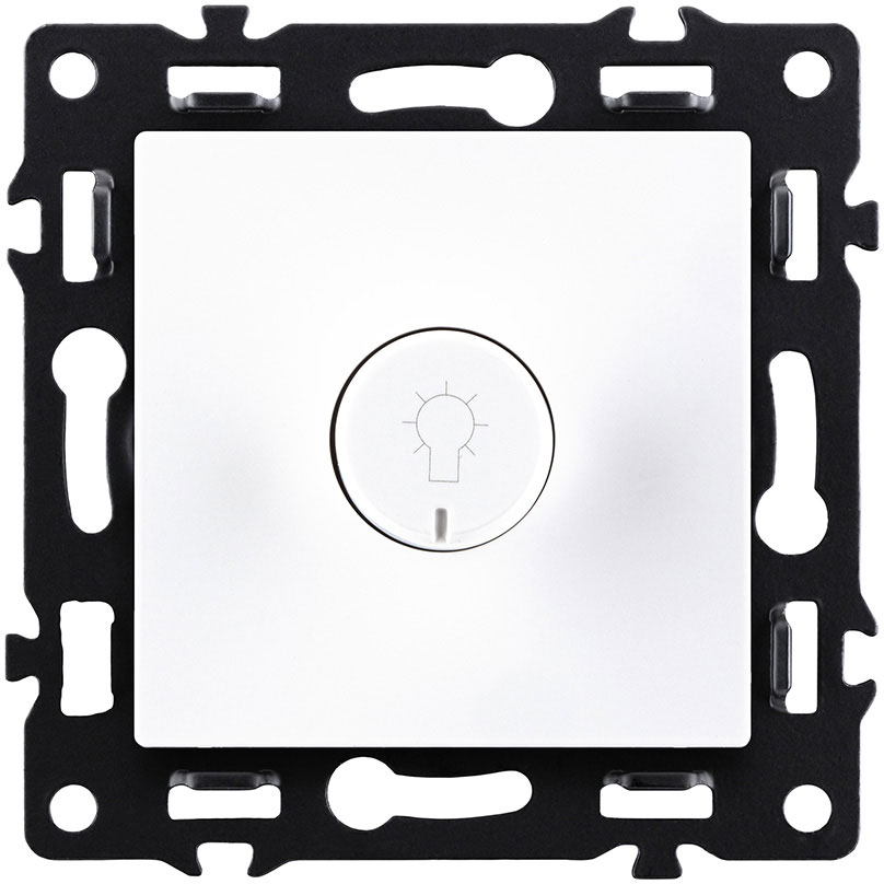 Светорегулятор для светодиодных ламп 5-200 Вт/ВА Asthetik, поворотно-нажимной, лампы накаливания и галогенные 220В (R), лампы с индукционным (обмоточным) трансформ.(L), лампы с электронным (емкостным) трансформ.(C), диммируемые лампы LED 220В (LEDi тип L), диммируемые лампы LED 220В (LEDi тип C), цвет - белый